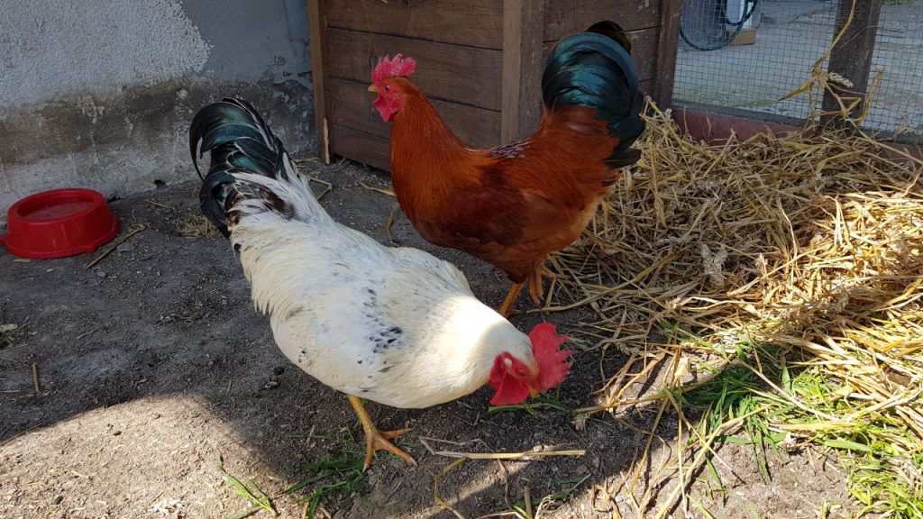Die beiden sind Zwerghähne und konnten aus privaten Gründen nicht mehr in ihrem bisherigen Zuhause bleiben. Sie sind ganz lieb 🙂