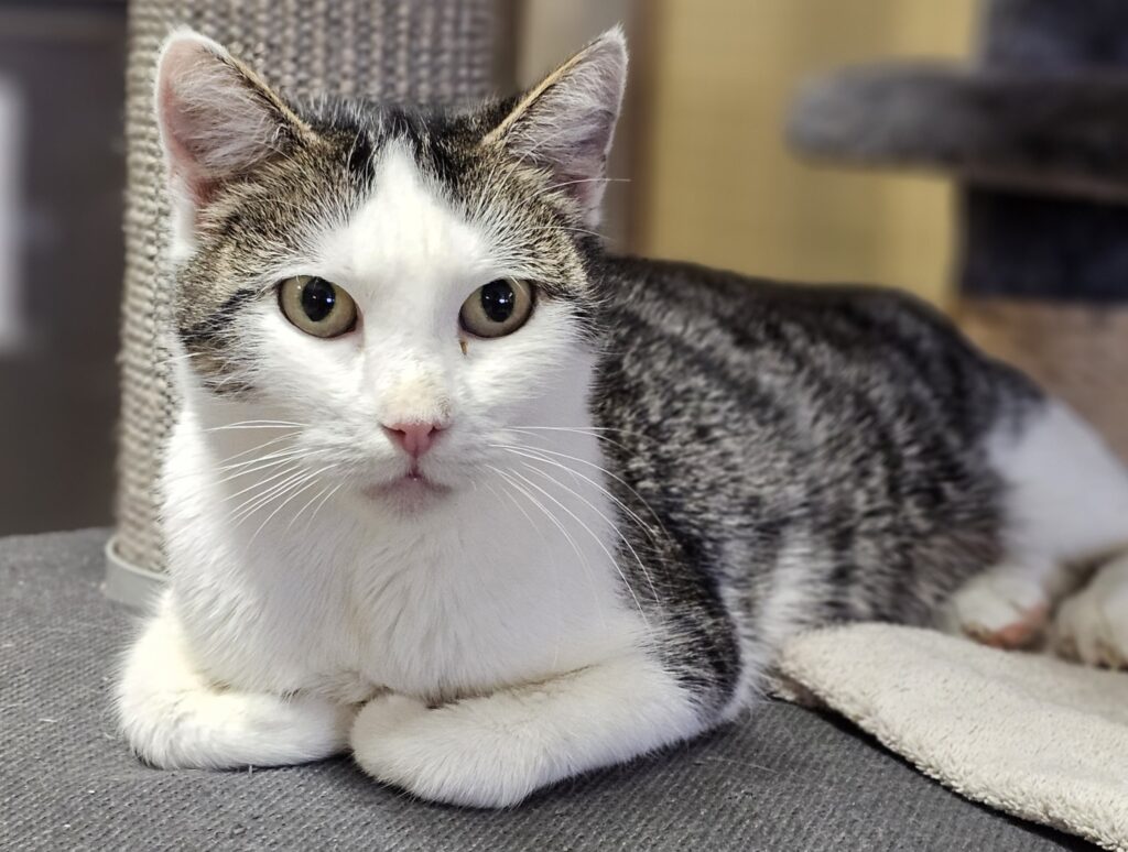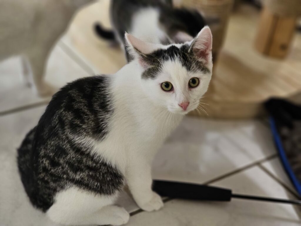 Donna kam im September 2023 als Fundkatze mit ihren 7 Mini-Kitten zu uns ins Tierheim. Mittlerweile haben sich alle prächtig entwickelt.