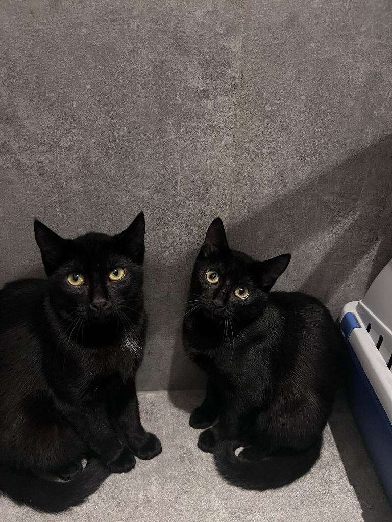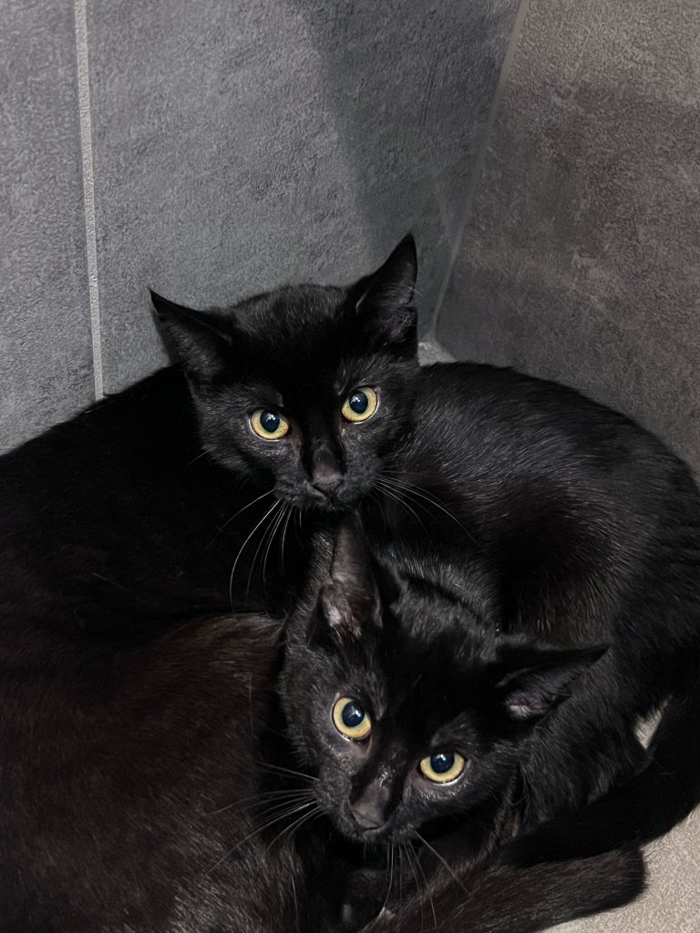 Beide sind noch ängstlich, sensibel und vorsichtig. Sobald sie Vertrauen gefasst haben, zeigen sie sich lieb und sanft. Der Vertrauensaufbau gelingt recht schnell, auch wenn eine gewisse Skepsis bleibt. Mit anderen Katzen sind sie sehr sozial.