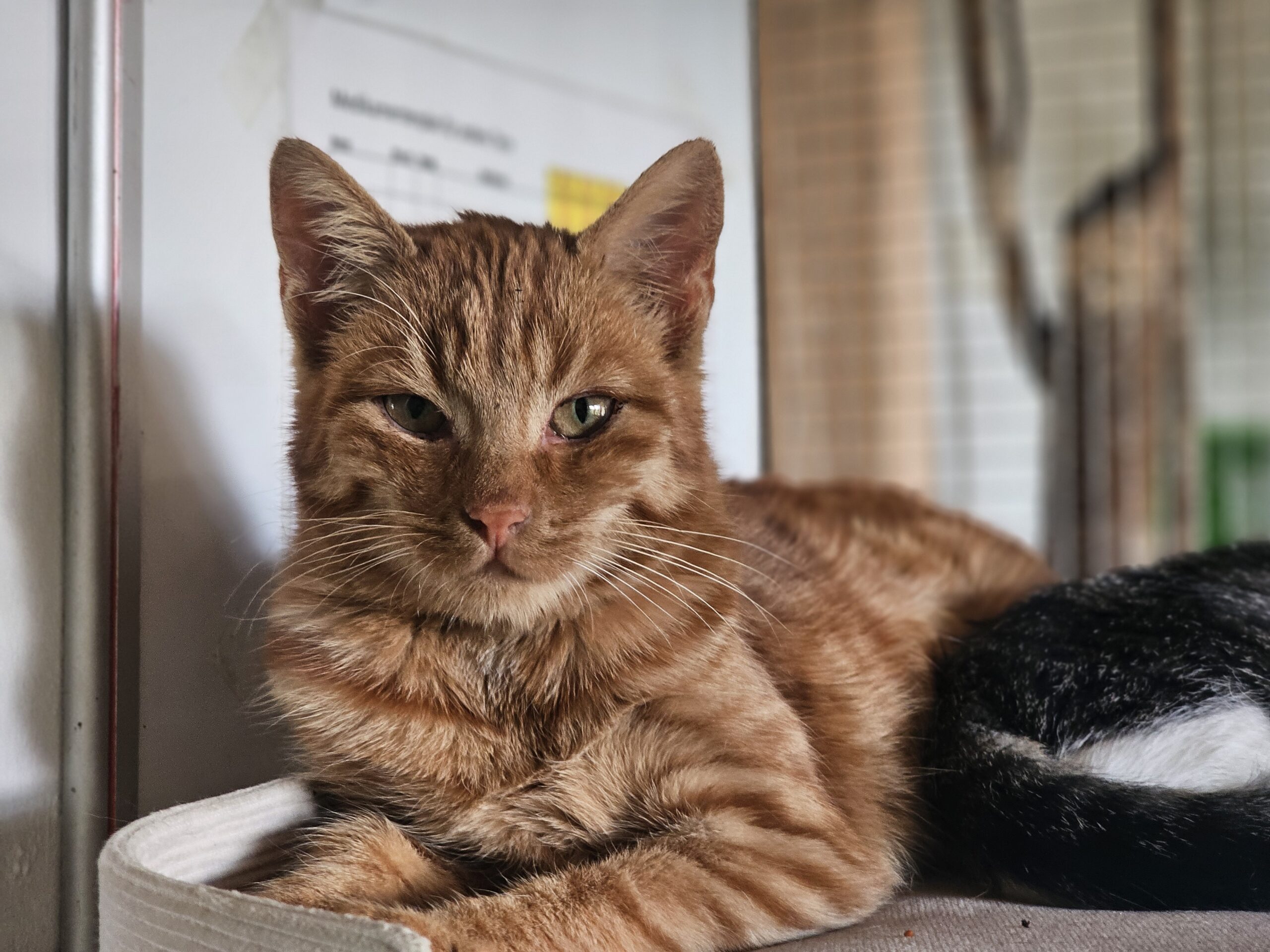 Red haben wir mit einer Lebendfalle gesichert. Tatsächlich ist der junge Kater sehr schnell zutraulich geworden und lässt sich gerne streicheln. Er ist sehr sozial anderen Katzen und hat bei uns schon einige Freunde gefunden. Er möchte keine Einzelkatze sein und sucht ein Zuhause mit der späteren Option auf Freigang.
